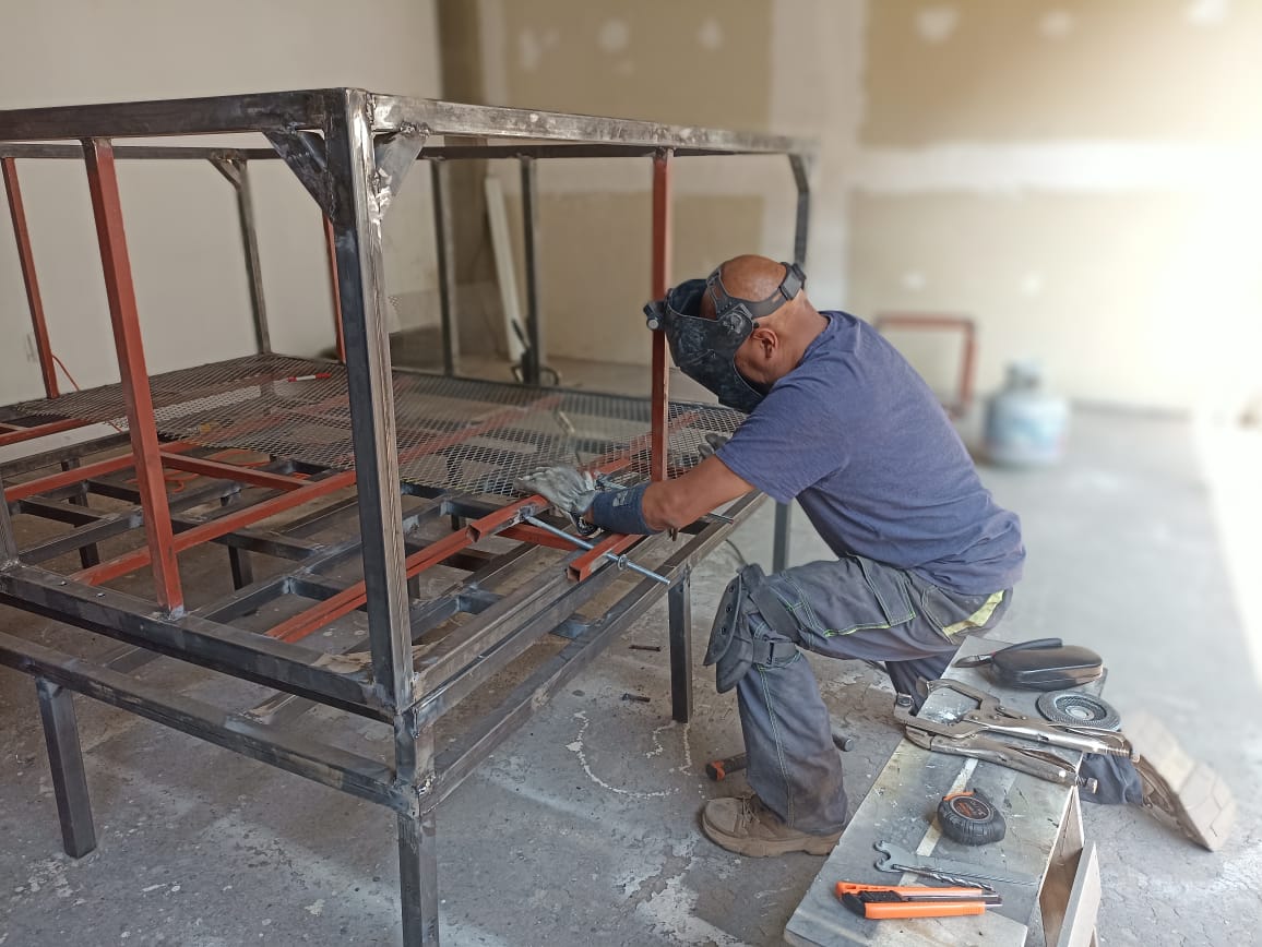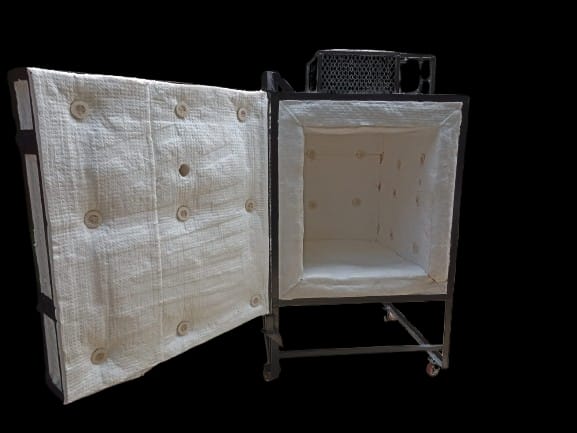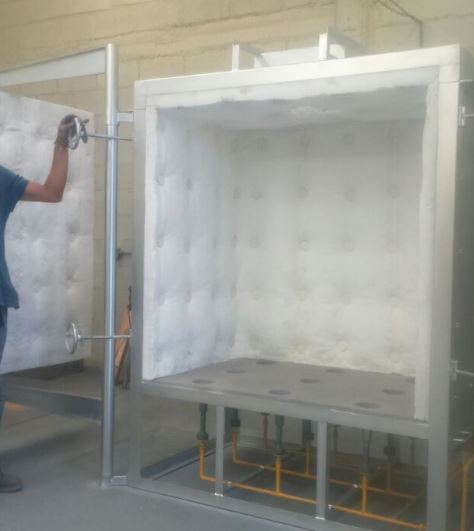 Estructura: Herrería metálica acabado negro, con 6" de fibra cerámica en 8lbs densidad .