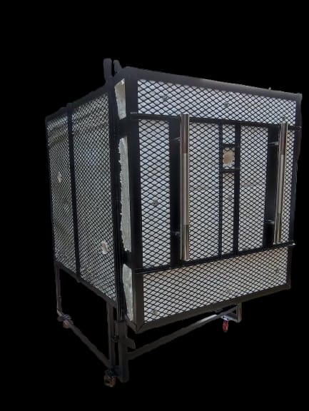 Estructura metálica ángulo y solera, y metal desplegado calibre 14. fibra cerámica., 8 quemadores atmosféricos QA12, tubo galvanizado y conexiones a quemador, regulador de alta presión, válvula de paso, manómetro. Incluye 4 placas refractaria cordierita de 52x50cm y 8 postes refractarios 15cm.