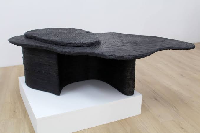 Mesa de centro realizada en cerámica de media temperatura con engoes negro. El diseño de la pieza esta manufacturada por diversas capas de arcilla modificada y acabado con estiques modelado.